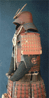 ← 日本料理「橘菖」のディスプレイに飾ってある赤備えの鎧。革縫二枚胴朱具足。 彦根にはいたる所に朱具足がある!うらやましいです。 つぼさま提供!