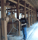 馬屋の中。お馬さんとツーショット!でもこれは張りぼてです。 | ||