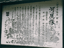 信玄公墓所 (旧土屋邸跡) の向かいに、織田信長の家臣で、甲州の仕置きを任された河尻秀隆のお墓がある。河尻は信長に従い各地に転戦、武田征伐の軍を起こしたとき (1582年) 軍目付けとして活躍し、甲斐と信濃諏訪郡の領主となった。背後の信長の権力を利用し、威圧的な政治を行ったと伝えたれる。また、武田遺臣を必要までに誅殺し、反感を買ったともいわれる。