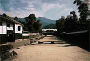 武家屋敷。左は高橋家、正面は小幡陣屋跡。小幡藩の武家屋敷は広大な敷地内に屋敷と庭園を配した。庭園は百坪以内と決められており、四季折々の庭園美が楽しめるようになっている。 |