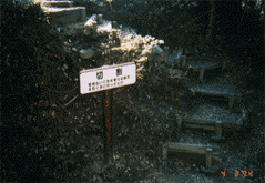 馬場平・・・奥に横田甚五郎長尹松ら二名が 1582 年 3 月 23 日に脱出して甲斐まで帰ったと言われる抜け道がある。右上が其の入り口。