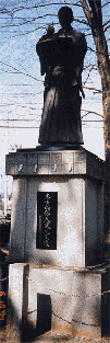 入ってしばらくすると左手に大弐のお墓があります。そして横には大弐先生の全身像があります。写真すいません。まだ朝方、また林にかこまれお顔がよく拝見できません。