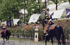 私が櫛形町小笠原にいたときはやっていませんでしたが、このごろ「やぶさめ」なるものを始めたようです。小笠原流なのか?弓道の世界ではほどんど小笠原流が主を占めているようでありますが。 うおー我が父が烏帽子姿だー!なんでも、「小笠原長清顕彰会の役員を仰せつかった」ためとのことでした。 |