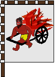 車丹波守善七 (斯忠) (佐竹家→徳川家) 佐竹家の将で、関ヶ原後の秋田移封に対して徹底抗戦の構えを見せ、忙殺された。丹波の息子である善七 (父も善七であるが) は、伝あって徳川家のお庭番になった。 丹波の旗指物は、白練四半に火車を描いた大指物で有名であった。徳川にとらえられたとき、磔にされたが、この旗指物が横に結びつけられていた (会津陣物語)。この火車は、地獄へ亡者を運ぶと言われる火車であり、自分の姓である「車」と掛けていたという。家康はこの話を聞いて、惜しい武将を無くしたといって惜しがったという話が伝わっている。そのため息子は徳川家に仕えるようになったと考えられる。その後の詳細な話はこちら! 右の絵はへたです。本当はもっと恐ろしそうに見えたことでしょう! |
