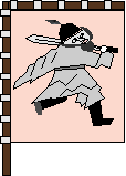 本多中務少輔忠勝 (徳川家) 忠勝公については今更語る事もないと思われますので (すばらしい HP もありますので)、旗指物の件についてのみ述べます。 右の絵は、非常にへたくそなのですが、鍾馗 (しょうき) と言われる中国の悪敵邪鬼を払う空想上の神です。中国宋の時代の徽宗皇帝が、毎晩頭痛に悩まされていた。ある日夢の中に頭痛を追い払う人物、すなわち鍾馗が現れ、一刀両断に病気の元である疫鬼を切った。次の日から頭痛は全くなくなったという伝説がある。一剣をもって邪を制すと言う意味より、本多家では忠勝の父、忠高のころからは少なくても旗印として利用していたそうである。 鍾馗は疫病払いの神としてあがみたつられ、五月人形として現在も伝わっている。本多家の旗印である「鍾馗旗印」は、歴史群像「徳川四天王」や福井県立博物館蔵の姉川合戦図屏風に載っている。右の絵は、ホントへたくそです。 |