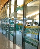 チェックインエリア、セキュリティエリアのガラス仕切り壁、搭乗待合エリアのフードコート、到着エリアなど、いろいろなところにアート作品を見つけることができます。