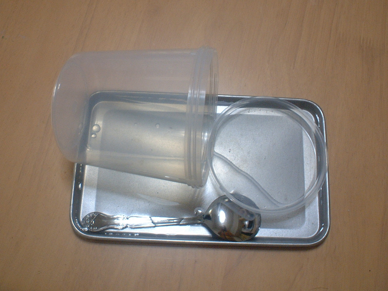 簡単には、沸騰したお湯にスプーンを入れて沸騰した後、そのお湯を内容器に満たしてふたをしてしばらく置く。