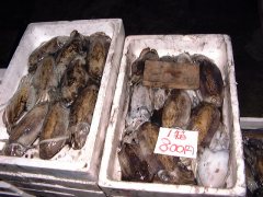 これをご覧のみなさん、日曜の朝くらいゆっくり寝ていたい気持ちはよ〜くわかります。が、しかしです。ここの朝市、まさに「早起きは三文の得」。一度足を運んでみる価値は十分あります。ただし6時過ぎには魚がなくなってしまうのでご注意を!