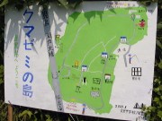 島をゆっくり一周し、またバス停の下へ戻ってきた。ここに「クマゼミの島」と書かれた岩黒島の案内板を発見!どうやら小学校の生徒たちの手作りのようだ。 |