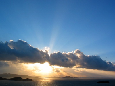 雲に隠れた瞬間、光の矢が青空に向かって放たれる...