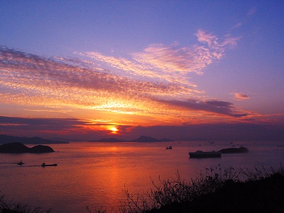 波静かな日、海と空が鮮やかに染まる。うろこ雲と澄みきった空が一日の終わりを告げていく...