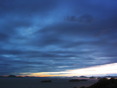 低く垂れこめた雨雲の向こうに晴れ間が見えるよ。