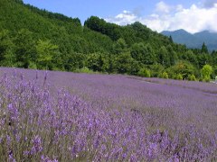 入り口を入ると早速ラベンダーのいい香りが漂ってくる。平日ということもあり、訪れている観光客もまだまばら・・・。さすがにここまで来ると湿度が低く蒸し暑さは全く感じない。1時間ほどゆっくり写真を撮ったり、子供にラベンダーアイスなるものを食べさせたりするうちに園内には修学旅行の女子高生たちが続々とやってきて活況を呈す。