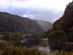 中和村へ入ると、ススキの生い茂る湿原のような場所があった。時折り雲の間から太陽が顔を覗かせる。いつまでもじっと眺めていたい風景だった・・・。 |