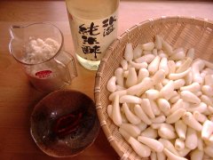 まずは、らっきょうの下準備。普通はサッと洗ってから始めるのですが、わが家では軽く土を落としてそのまま掃除をしちゃいます。(みなさんはちゃんと洗ってから・・・ね!)