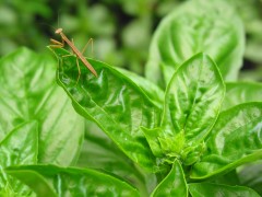 バジルも高さが30cmほどになったので、先端を摘心。こうしておくとどんどん葉っぱが茂ってこんもりとした姿になってくれます。 |