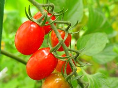 lこちらは1週間前から色づき始めたフルーツトマトのアキコ。雨上がりのせいか、艶があってピカピカしています。これから毎日少しずつ食べられそう。(^¬^) |