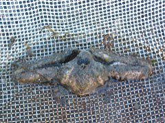 と長男が呼ぶので行ってみると、なるほど、ツメのある前足だけが巨大で確かにユニーク!見れば見るほど不思議な姿!たぶん、ヒシガニの仲間だと思いますが、ちょっとバランスが悪そうな体型ですね・・・。(失礼!) |