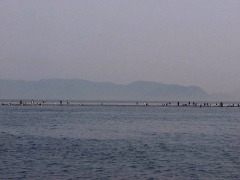 潮が完全に引くと長さ約1km、幅約300mの広い干潟が姿を現します。 |
