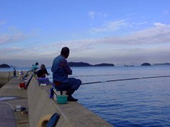 こちらは、地元の釣りファンに人気の高い高室(こうむろ)漁港。ここは、釣れる魚種がたいへん多くチヌ、スズキ、メバル、アブラメをはじめ夏から秋はママカリ、サヨリなどが堤防のすぐ近くまで寄ってきます。 |