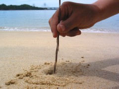 子供たちが水遊びをしている間、砂浜を歩いていると・・・