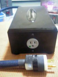 アナログケーブル(高音質2chステレオ用) ワイヤーワールド GoldEclipseⅢ デジタルケーブル(同軸 映画用) オルトフォン GIX1 SILVER アコースティックリヴィブ DSIX−1.0 デジタルクロック ORTHOSPECTRUM(インフラノイズ) ASB−9999 ![]() デジタルケーブル(TOS サラウンドヘッドフォン用) サエク OPC−X1 アナログケーブル(SACD DVD−Audioアナログ5.1ch用) SOUND DEN SLC-CMS ハーモニクス Cl−230 ワイヤーワールド GoldstarlightⅢ アナログ出力のハーモニクスを取って、ORTHO SPECTRUM(インフラノイズ)のクロックジェネレーターASB−9999を導入しました。CDやDVDのクロックを合わせるのは最近の流行のようですが、オークションに出ていたのでためにし買ってみました。ASB−9999はクロック自体を内蔵したタイプとはことなり、調整には電波時計を用いるという珍しいタイプです。日本の標準時刻を発する電波を受信して、それによってデジタルクロックの同期を取るというのです。弱点としては電波が届きにくいビルの谷間などでは使用できないことになります。我が家も実は近くにアパートがあって、テレビの電波はアパートに遮られるので共同アンテナを立てています。ただ、我が家に元々あった電波時計の方はきちんと機能していますので、何とかなるのではないかと思って買ってみました。セッティングは簡単です。調整も何もありません。DU−7からのデジタル出力をABS−9999で受け、さらにそのデジタル出力をAVアンプの方に回せばよいだけです。ABS−9999には電波を受信するための箱型のアンテナがつきますので、こちらを適度な方向におけば終わり。注意というとアンテナですので、スピーカーやテレビなどの磁力や電磁波の強そうなところを避けるということくらい。あとは電波時計が機能することを祈るだけです。電波の受信はすぐに完了しました。中央にメーターが着いていますので、これが電波の入り具合を見るのかと思ったら、関係ないそうです。機器の働き具合を見るだけで、中央のメーターが標準範囲に入ればよいとのこと。電波が受信できない時は青いランプが消えるらしいです。 お気づきの方もいると思いますが、こうしたセッティングの場合、当然デジタルケーブルがもう1本必要になります。ということで、これも買わなければと思っていたところ、ABS−9999をご使用されていた方からちょうどDSIX−1.0も使用しないので・・・とゆずってもらえることになりました。こちらのケープルも話題のケーブル。中央に着いた小箱でデジタル信号を整え直すということをするそうです。そのためにケーブルなのに電源が必要になります。 この組合せでトータルな音ということになりますが、最終的にはD/AコンバータはAVアンプの方ですので、もしかしたらオーバークオリティの面もあるのかもしれません。我が家では重心がやや下がり、分解能が少し上がりました。鮮度もちょっと上がった感じで、実体感がさらにましたと感じました。先のバージョンアップはこの2つを導入した後に行ったのですが、アナログ出力との音の違いにもこの2つの影響はあるかもしれません。ディスクによる使い分けをしていると書きましたが、基本的な標準は現在デジタル出力になっています。音の落ち着きやすわり具合が、こちらの方がよいからです。アナログ出力でのジャズはちょっと明るい気がします。逆にポップスやロックなどはアナログ出力の方がよいかなと思っているところです。 <追加 平成16年11月> DU−7からAVアンプまでのケーブルをつなぐTMDのSTRATSPHERに特に不満はなかったのですが、ひょんなことからSOUND DEN のSLC-SZというピンケープルを落札してしまいました。TMDと同じ単線ですが、クライオ処理をしていることと、それなりのシールドがかぶせてある点など構造的にも違いがあります。付け替えてみましたが、正直それほど大きな違いは感じませんでした。SOUND DENもマニアの間では名の知れた広島のショップメーカーですが、いずれも解像度が高くスッキリした音調で、単線らしい素直さも感じます。実はこのSLC-SZはショップの方でさらにスーパークライオ処理をして最新のSLC-CMSへとバージョンアップもしてくれるとのことで、どうせならとスーパークライオ処理の方も頼んでみました。待つこと3週間。外見的にはなんにも変わりません。さて、どうなんだろうと付け替えてみますと、以前に比べて少し音数が増えているように思います。STRATSPHERと比べてもそう感じます。音質もちょっと固さがとれたかもしれません。ここで目に見えて違うというほどではありませんが、聴感としてはよくなっていると感じました。ということで、この直接対決の結果わずかにバージョンアップしたSLC-CMSが良いと判断して、現在はSLC-CMSがアナログ出力を担当しております。 <追加 平成17年12月> クリーン電源システム CES E-100Ⅱ ![]() 再生環境にも、わずかながらの変化は生じました。追加されたのはクリーン電源の装置でCSEのE−100.2という製品です。電源系は共通して音の