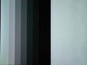 | グレースケール ③ こちらのグレースケールは右の白の部分が大きい。実際の映画では明るい部分と暗い部分が同時に現われるので、明部と暗部の差を確認する。明るい場面があっても黒の違いが見分けられることが大事。 |