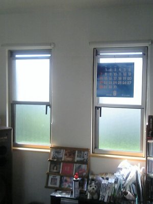 見よっっっっ、このさわやかに差し込む陽射しの美しさをっっっ この形状のためにサイズは特注でしたが、ネットで買うとこれもかなり安かった。色はクリーム色にしたけれど、これも部屋の壁とマッチして正解。暗室のために部屋を暗い色で塗るマニアもいるが、我が家はちょっと遠慮したい。ロールカーテンだけではやっぱり隙間ができるので、映画を見るときにはやっぱり布で隙間を埋めています。この明るさのためなら、それくらいは仕方ないところ。 |