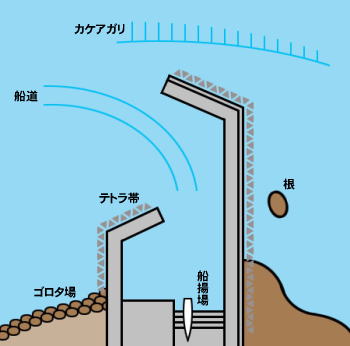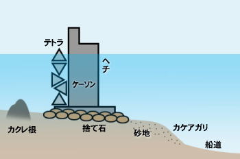 岩やコンクリートの障害物の総称。磯を指すこともある。