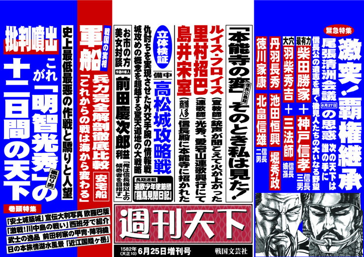 「戦国時代にこんなゴシップ雑誌があったら・・・」という発想から、空想で「週刊天下」という雑誌を考えました。
