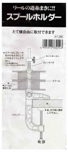 使用状況: スプールをセットしたところ。 スプールホルダーはスプールから出るラインが リールの中心になるようにずらしてセットする。 |