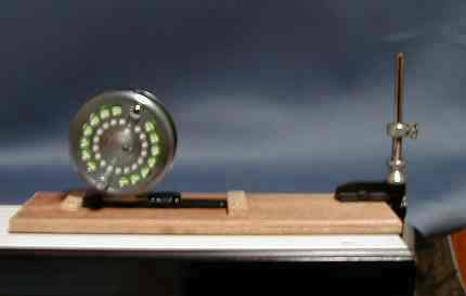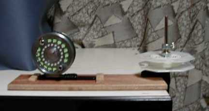 ワインダー全体: ベース板:(コンパネという安い板) 左:リール押さえ 右:スプールホルダー |