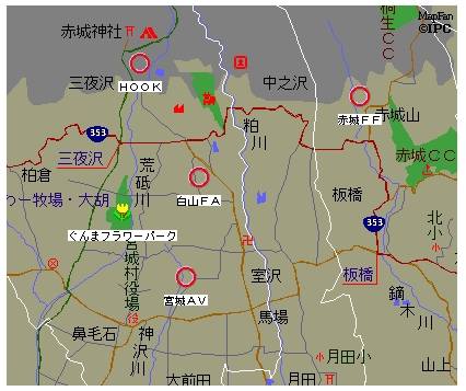 4つの管理釣り場は概略下記のような位置関係だと思います。 ![]() ●アングラーズエリア HOOK ●赤城フィッシングフィールド ●白山フィッシングエリア (12/23 OPEN) ●宮城アングラーズヴィレッジ (もう少し北かも知れません) 補足:高崎ICから白山FAまで、国道353経由で23km、約40分。 3月31日(土)「北関東自動車道 高崎JCT〜伊勢崎IC」が開通予定。 (おそらく駒形ICが最も近い。) |