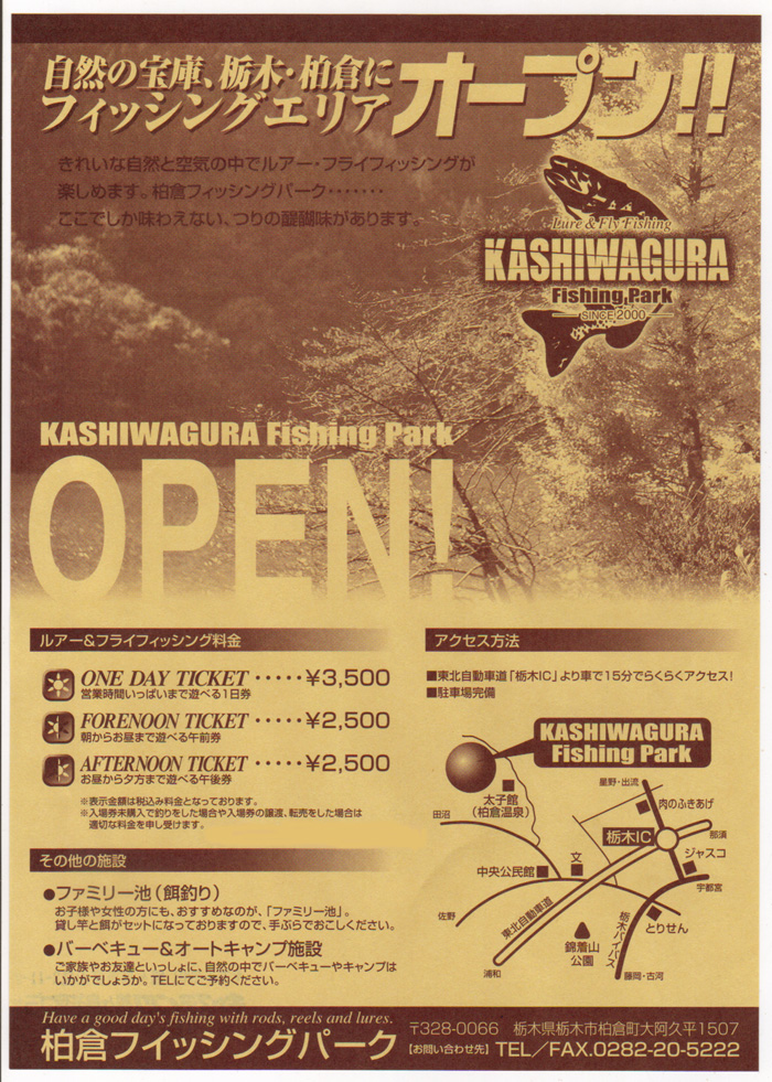 久々に釣具屋さんへ行ったら、柏倉フィッシングパークのパンフレットがありました。