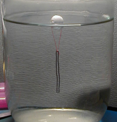 (7cmのレッドワイヤーNO.3を二つ折にして、吊るす。)