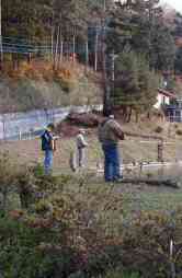 今日は、いつもお世話になっている「フイッシング・ショツプ・レインボー」さん主催の2000年秋の釣り大会。 大会といっても、11人のこじんまりした集まりです。 1ケ月ほど前にレインボーさんから、案内をいただいていたのですが、仕事の予定が流動的だったので、参加を決めたのは大会2日前でした。 会場となる「杓子山釣倶楽部」は、毎週水曜日が貸し切りの日になっているみたいなので、 その都合で大会は水曜日(ちなみに、レインボーさんのショップの休みも水曜日)。 普通のサラリーマンの私は、やや強引に休暇を取り、参加を決めた後に、あわてて、不足気味のフライを何本か巻いたりしました。 前夜、久しぶりに”釣行のための早寝”をして、3時半起床。圏央道と中央道を使って、「河口湖」ICへ。 (湖に通っていた頃の)冬場は都留ICの辺りから、富士山がきれいに見えるのですが、今日は曇りで山裾が見えるだけでした。 天気予報では「曇り」なのですが、雲の厚さが気になります。 集合時刻は7時。5分ほど前に「杓子山釣倶楽部」に到着。 釣り大会も初めてですが、この釣り場も初めて。ここはホームページを開設しているので、事前に情報を入手。 地図もプリントアウトしてきましたが、やっぱり、こうゆう場合(初釣行では)カーナビが便利です。 駐車場には、2台(2人)先着の車、内1人は、レインボーさんのショップで顔見知りの人だったので、なんかちょっと安心したりして。 「レインボーさん達(ショップ集合組)は中央道の工事で少し遅れるかも知れないですよ」などと話をしていると、ほぼ定刻通りに皆さん到着。 すぐに、ルール説明(釣り上げた魚の最大サイズで成績決定。釣り位置はローテーション。)と自己紹介。 参加賞(豪華!)配布をして、さっそく釣り開始。 この釣り場は、ひっそりとしたプライベートポンドの雰囲気の釣り場で、周りに木があるので、キャストしにくい場所もあります。 自然に釣り位置は決まってしまいますが、今日の人数で貸切なら、かなり余裕があります。バックのスペースが充分にある所も何箇所かはあります。 私は、今日の大会が尾数ではなく、サイズなので、「大物狙い」(やっぱり優勝したい?)でシンキングTypeⅡ(SLS)でスタート。 他の皆さんはルースニングがほとんど。 やはり、大物はスレない内の朝が勝負かな(ほんとに優勝狙ってる?)と思ったのですが、私に上がるのは普通サイズばかり。 そうこうするうちに、あちこちで大物があがりだし、「36cmだ」「38cmで〜す」とか・・・あれ〜、こつちはまだ測定対象サイズがこない〜。 池のサイズ(56m×28m変形)から考えて、そんなにでかい魚が入ってはいないと思われるので、やはり40cmが優勝ライン? (ちなみに、昨年の優勝サイズは41cmとのこと)そして、とうとう「41cmだあ」という声。しかも釣ったのは昨年の優勝者Sさん。 私は数は釣れるものの、いいサイズがなく、あっという間に、一度も測定せずで2時間経過。位置移動のローテーション。 移動後、しばらくして、ようやくやや大きいのがかかり、「きたかな?」と思いましたが34cm。 当たりも落ち着いてしまい10分に1尾のペース。う〜ん、コーヒーブレイク。 しかし、2回目の移動で、倶楽部ハウス下に移動してから、ペースがあがり、やや爆釣モードに突入。 それを見て、レインボーさんがやって来て「さすがですねえ〜」とお褒めの言葉。ちょっと嬉しいけどサイズが〜というカンジ。 でも、たくさん釣れだしてからは、大会成績のことは忘れて、充分に楽しめました。 2時間×3(移動2回)で、6時間で競技終了。午後1時。倶楽部ハウスでおかわり自由のうどんでわいわいランチ。 そして、成績発表。やはり、41cmでSさんが優勝。2位は同サイズ2名、ジャンケンで決定。私の34cmはたしか7位(かな?) 賞品はたくさんあり(なんとバンブーロッドまで)、成績順に好きな賞品をゲットしていくシステム。 4順ほど周って、気がひけるくらい、たくさん賞品をもらってしまいました。(レインボーさんの出血大サービス) さて、大会終了後は、夕方5時まで、自由に釣る時間。 ところが朝晴れていたのに、雨が振りだしレインウェア着用。それでも気温が高いので「凍えるような雨」というカンジでもなく、あまり気にならない。 やっぱり、午後は当たりが少なくなり、シンキングはかなりシブクなりました。 それでも、タックルのセッティングが億劫で、そのままネバってしまいました。 午後4時過ぎ、全く当たらなくなったので、残りあと40分になってから、ようやく、フローティングを出してルースニング。 BWP(FBP)ニンフのライトオリーブ。なんと、それから連続で当たり、またまた(爆)のモード。でも時すでにおそく、すぐにタイムオーバー。 山間の夕方は暗く、老眼にツライです。マーカーもよく見えなくなって釣り終了。am7〜pm5(実質8時間) 44尾。 大会初参加、初めての釣り場なので、様子がわからず、ちょっと不安だったのですが、参加された皆さんが、とても気さく