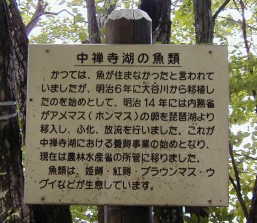 ■序章 (特別釣行記なので、カッコつけて「千夜釣行」風に書いてみました(^_^;)) 奥日光(華厳の滝以北)には、戦場ヶ原、チョークストリームとして有名な湯川、湖底から温泉の出ている湯の湖などもあるが、 なんと言っても、その象徴は、中善寺湖である。標高 1269m 最深部 163m 面積 11.6k㎡ 溶岩流の堰き止め湖という成り立ちによるためか、栄養分が乏しく、養殖の研究が始まる明治以前は、魚が生息していなかった。 また、山岳信仰の宗教的な関係で、かつては全面禁漁だったらしい。 解禁された今も湖の西半分は禁漁区であるが、残り東半分の水面では、毎年4月下旬から9月下旬まで、遊漁が解禁されている。 釣りの対象魚としては、主にヒメマス、ホンマス、レイクトラウト、ブラウントラウト、レインボートラウトであり、放流も行われている。 釣り人はそれぞれの思いで、この湖を訪れるが、特にフライフィッシャーの心情は格別である。 それは、この湖が日本のフライフィッシング発祥の地と位置づけられているからだろう。 大正13年、イギリス人ハンス・ハンターが湖畔の別荘をクラブハウスとする「東京アングリング アンド カンツリー倶楽部」を設立。 避暑地を訪れた、外交官や財界人がフライフィッシングを楽しんだという。 そして時は流れ、21世紀となった今の日本で、多くの釣り人がフライフィッシングを楽しむことができるのは、 幾多の先人達の膨大な努力によるものだが、それはすべて、この湖を原点として始まったと言えるだろう。 そのため、今も多くのフライフィッシャーが、ここを『聖地』と呼ぶ。 また、近年のゲームフィッシングブームにあって、河口湖に代表されるような、積極的にブラックバス放流をする水域とは対照的に、 頑なに、バスの違法放流を拒み続ける「孤高の湖」でもあり、フライフィッシャーに限らず、トラウトファンにとっても聖域でもある。 トラウトの養殖放流を研究する養殖研究所日光支所が禁漁区の菖蒲ケ浜にある。 トラウトの中で特筆されるのは、レイクトラウトだろう。1966年にカナダから種卵を移入、人口孵化した成魚が試験放流された。 その後現在に至るまで、放流されていないため、日本では、ここにしか生息しない魚種である。 したがって、今、湖に生息している魚体は、完全な自然繁殖の直系子孫である。 爬虫類を想像させる強烈な斑紋を持つイワナ属の巨大魚で、大型は150cmにもなると言われている。 冷水を好み、物音に敏感なため、普段は深場に潜み、なかなか浅場には近づかない。 もし、この流線形の野生をラインの先に捉えることができれば、フライフィッシャーの夢のひとつは叶えられるはずだ。 毎年放流されている魚種は、ニシ゜マス成魚放流を除くと、ほとんど稚魚放流である。 自然の掟、食物連鎖を生き抜いた固体のみが大きく、力強く成長する。 したがって、釣り上げられた魚体はいづれも完璧で、釣り人が失望することはない。 レイクトラウトに限らず、ここで釣果を得ることは難しいと言われている。 それは、水深があること、透明度が高いこと、稚魚放流、自然繁殖で魚の警戒心も強いことなどがその要因だろう。 「ヒメトロ」と呼ばれる、ヒメマス狙いのトローリングで深場を釣る方法が最も有効であることが証明するように、 岸釣りの範囲では、なかなかターゲットに巡り合えない。 水温、モンカゲロウのハッチや、浅場にワカサギなどのベイトフィッシュが寄ることが必要条件となり、時期的にも限定される。 (なんか、こうゆう文章は私の釣行記には似合わないですな(^_^;) 少し普段通りに戻します。) |