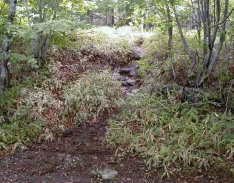 ■第4章 国道側 ダルマ石 ---大物に会う 金谷ボートハウスから少し歩くと13番岬です。 ●岬の標識 ●13番別荘 ●別荘の前は少しスペースがあり、以前はここまで車が入れた。 ●岬のすぐ下の湖面 (フライは無理) ![]() ●湖岸に沿って、遊歩道があります。 ●すぐ上が国道、あちこちに遊歩道への小道がついている。 ![]() ↑フライマンががんばっていました。 ●遊歩道にはいろいろな説明案内が立っています。 ![]() ●遊覧船 約1時間で湖の各所を回る。これが通ると、少ししてから波が来ますが、大きな波ではありません。 ![]() 13番から、ダルマ石まで歩きました。途中、3ケ所ほどロッドを出しました。 天気は回復し、どんどん暑くなってしまいました。もう水温も20度近くあり、ほとんど可能性はなくなってしまいましたし、 右からの西風が出てきて、キャストは少ししにくくなってしまいました。 しかし、本当に気持ちのいい所です。これぞ湖ってカンジです。なんか気持ちが洗われます。 ●左の大きな岩が通称「ダルマ石」 ![]() 最後のポイント、ダルマ石。ここに来た時には、もう11時近くになっていました。 国道側の13番から東は遠浅なのでラインはフローティングに変更しています。9’0”8# ST-9-F。 マーカーなしで、ストーンフライニンフの引っ張り。 足元で確認すると小魚は反応します。 ウェーディングして、キャストを繰り返していた時、・・・私の2mほど前、水深約1mの水中に突然、80cmくらいの魚が現れました。 私はドキッとして、体が固まってしまいました。波打つ水面の中、グレーの魚体が私の前を横切っています。 偏光グラスで凝視すると・・・コイです。大きなコイです。しかも1尾目に続いて2尾目も現れました。巨鯉のペアでしょうか。 いやあ、ビックリしました。これがトラウトだったら良かったのにと思わずにはいられません(^.^) しかしまあ、ロッドよりも短い距離に、そんな大物がでても、どうしようもないですけど(笑) すっかり釣果は諦めて、でもなんとなく別の意味で満足して、車に戻ることにしました。 遊歩道を歩いていて、ふと異変に気がつきました。ロッドの先でなにか音がします。見ると、 ![]() ありゃま、またロッドティップを折ってしまいました。でも、さっき釣りを終える時は異常はなかったのに。 もちろん、遊歩道でも、ロッドが木に当たらないように持って歩いたつもりです。とすると、疲労破壊?? でもなんか不思議とへこまず、笑ってしまいました。 ●今日は魚の写真がないので・・・ ![]() 特別釣行記 ”聖地巡礼” 完。 |