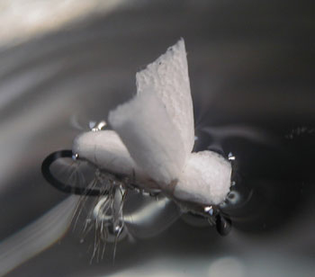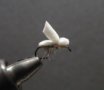 ■フライフォームフライ HOOK釣行(2003/5/17)での実釣の際、テストしたフライフォームのフライパターンは、浮力が予想よりも少なかったので、 改良するべく、両端を閉じた形のボディに、縦カットのウィングを付けたパターン巻いてみました。 ■後ろ姿 ![]() 「ん?、どっかで見たことがある感じ。・・・あっ、バルタン星人!」 ということで、名前は「バルタンフライ」とか、カッコつけようかと思いましたが、 そうゆう中途半端はよくないので、感性のままに「バルタン星人」にしました。(意味わからん!) --------------------------------------------------------------------------------- ■タイイング(写真のフックは、TMC 900BL #14) 1.フライフォームと同色のスレッドで下巻き。 2.フライフォームを後ろ方向に固定。 3.テキトーに、ハックルやピーコックハールなどを付ける。 ![]() このハックルを付ける目的は、「フライマンのタイイングとしての、最後の一線を死守する」ためです。(^.^) すでに、そうゆうポリシーを捨ててしまっている私は、この部分を付けていません。(なんじゃ、それ?) おそらく、このハックルは、釣れる・釣れないとは、ほとんど関係ないと思うので、お好みで付けて下さい。 付ける場合は手間がかかり、付けない場合は「勇気」が必要です。(笑) 4.フライフォームを折り返して、ハックルの前に固定 ![]() これで、両端を固定したので浮き袋状になり、浮力が確保できるという計算。(の予定) 5.ハサミ、じゃなかったウィングになる部分を、もう1本固定 ![]() 6.後ろの先端を斜めにカットしてから、後ろからフライフォーム中央を縦にカット。 ![]() 7.ヘッドを小さくカットして完成 ななめ前から ![]() 使用する場合は、フロータントを塗布した方がいいと思います。 --------------------------------------------------------------------------------- ■フロータントなしで、着水テスト。 最初の着水 ![]() 何回か水面に叩きつけてみると・・・↓こうなります。 上(釣り人の視点)から 水中(魚の視点)から ![]() (4倍のマクロコンバーターレンズを使用して撮影) う〜ん、まあまあかな。 しかし、これは本当に独立気泡素材なの?→ フライフォーム ※ポリオレフィンとは、ポリエチレンやポリプロピレンなどの総称とのことです。 他の素材と比べてみたいと思い、ちょっと探してみたら、「これは沈まないだろ。」という感じの発泡材料を見つけました。 水道管等の配管カバーに使用する発泡(断熱)材と同じ材質です。あの少しヌメっとするタイプのものです。 スペックが不明なので推測ですが、おそらくPE(ポリエチレン)だと思います。 短冊状にカットして、早速、同じパターンを巻いてみました。 ■バルタン星人 2号 ![]() う〜ん、同じですね。^^; どうも発泡倍率の違いだけのようです。 ■本家バックフロートフライ、フロート材については、 リンクサイト フライで鯉を釣る(The Carp by Fly) さん をご覧下さい。--------------------------------------------------------------------------------- ◆余談ですが、なぜか妙にウルトラマンシリーズや怪獣に詳しいウチの女房殿のコメントを思い出しました。 「ウルトラマンで一番カッコイイのは、何と言っても、バルタン星人よねっ。」 (って、そっちが主役なのかっ?) ◆最近のルアーはキャラクターものもあり、「バルタンルアー」というのもありますね。 もともと、エビだから釣れそうな気もします。まあ、釣り師の考えることは・・・「ふぉ〜ふぉっふぉっ」 (^.^) |