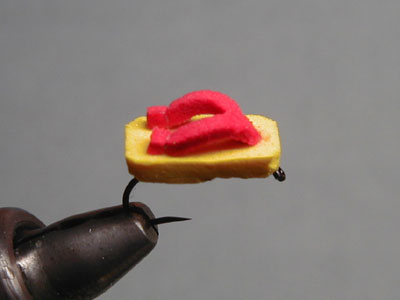 追加安い風呂マットの素材はPE(ポリエチレン)発泡が多いと思います。こっちは、特売なら\200かな(^.^) もちろん、PEでも十分に使えます。→バルタン星人の2号 参照。 EVAは油性マジックで、カンタンに色も付けられます。 ということで、この風呂マット(EVA)のフロート材を、「 BM-Float 」と呼ぶことにします。(BM=「Bath Mat」=風呂マット) 毎度、そのまんまの名前で、すみましぇ〜ん^^; ところで、なぜ、私が使い古しの風呂マットなんかを捨てないで持っているかというと、 この材料は便利なので、いろいろ利用していて、 → NOTE NO.8 今回のこととは関係なく、少しだけ在庫(切れ端)がありました。(^.^) ・・・今回作ってみたフロート材を使用したフライパターンは、また順次研究したいと思います。 ----------------------------------------------------------------------------- ◆オマケ ところで、EVAと言えば、靴やサンダルのソール(底)に多く使われています。 サンダルと言えば、海やプールで履くビーチサンダル。水辺で使用するので、水に浮くようになってます。 だから、フロートドライフライには最適なマテリアルですネ・・・ 「あ〜っ!」と、またバカなことを思いついてしまいました。思いついたことは、どうしてもやりたくなってしまいます。(笑) ・・・ ■参考出品 オリジナル フロートドライフライ 「B3」 ![]() 「B3」は、「ビーサン」と読んで下さい。 ( 注:「ビーサン」=ビーチサンダルの略称 ) このフライは実釣には使えません。いや、恥ずかしいからではなく、"アート"と"実用性"のギャップが・・・ って、バ、バカだねえ〜、ホントに。それにどう見ても、下駄だろ、これっ! |