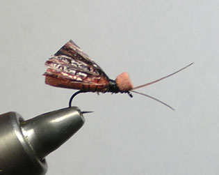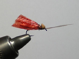 ■BF-monkage ![]() フック : TMC 900 BL #12 スレッド : UNI-Thread W 6/0 Dk Brown テール : フェザントテール テールはボディ下面に接着 ボディ : EVA-FLOAT Mサイズ ページュ(クリーム) ウィング : PP-WING → NO.45 ハックル : Emu Body Feather → NO.15 ■ BF-monkage 説明 モンカゲロウは、日本では代表的な大型カゲロウ。成虫の体長(ボディサイズ)は20mm〜30mm程度。(ドデカBFにピッタリのモデルですネ。) 適合フックサイズは#8〜#10程度。色は薄い黄色〜褐色。羽化は5〜8月頃。 カゲロウは飛翔していない時に羽根を立てて重ねるのが特徴。 もちろん飛翔する際は羽根を広げ、トンボが縦になってパタパタ飛んでいるような姿になります。(古くはトンボのことをカゲロウと呼んだそうです) 成虫(スピナー)が羽根を広げたまま疲れ果てた(スペント)状態のパターン「スペント・スピナー」でもいいわけですが、 それではあまりにフライのプロポーションが大きくなりキャスティングの空気抵抗が大きいので、飛んでいない=羽根を閉じた(フォールド)状態の パターンにしました。(これでも十分空気抵抗は大きく、キャスティングで回転してしまいます。したがって、近距離用。) このフライは着水後、横倒しの状態になりますが、実際のカゲロウが羽化に失敗した場面や寿命を終えた成虫が水面に落ちた状態としては、 羽根を広げた状態と羽根を閉じた状態のどちらもあるので、横倒しになってもいいわけです。 むしろ横倒しの方が水中の魚からはフライのプロポーションがよくわかるので、確信して捕食することが期待できます。 =========================================================================================== ■ BF-caddis ![]() ![]() ![]() ![]() フック : TMC 900 BL #14 スレッド : UNI-Thread W 6/0 Dk Brown ヒゲ : フェザントテール ボディ : EVA-FLOAT Mサイズ 茶、レンガ、黒 ウィング : PP-WING → NO.45 油性マジックで着色。 ■ BF-caddis 説明 カディスはトビケラのこと。イブニングにトビケラが群れで飛ぶ姿は、まるで「ガ」の大群のように見えます。 トビケラは、羽根を切妻屋根状に畳むのが特徴。したがって、横から見ると羽根が三角形に見えますので、多くのカディスパターンは三角形の プロポーションをしています。 参考:カワゲラ(ストーンフライ)はキチンと重ねて背中に羽根を畳みます。 このパターンはサイズ・色としては「ニンギョウトビケラ」をイメージしています。適合フックサイズは#12〜#14程度。 「ニンギョウトビケラ」の羽化は5〜10月頃。本物は褐色(茶)なのだと思いますが、薄暗いイブニングでは黒く見えるので、 最初からこげ茶、黒というのも巻いてみました。色は単純に強調していますが、ビミョーなイミテーション効果を狙ってヒゲ(触角)を付けてみました。 モンカゲロウと比較すると小さめのパターンなので、水中からの視認性を考慮して、今回は羽根を途中まで広げたパターン(黒)も巻いてみました。 カッコよく言うと「BFスペント・カディス」。 羽化の期間がモンカゲよりも長いので、使える期間も長いフライになると思います。 =========================================================================================== ◆BFフライを「お笑い」に例えると・・・(はあ?) 私の普通のBFは、吉本新喜劇のギャグのようなもので、何の脈絡もない一発芸(アトラクター)ですが、(ひょっとして魚にはイマージャーや ピューパに見えているかも知れませんが) 今回のパターン BF-monkage、BF-caddis は、新作落語のようなものかなと思います。(はあ?) 基本と古典、正統を踏まえた上で、新しいネタ(素材)で現代的なテイストに挑むという感じでしょうか。(そんなオオゲサなものか!) スミマシェ〜ン^^; ・・・しかし、「基本に忠実」や「正統を守る」のもいいですが、私としてはそれではあまりに堅苦しい。 やはりカンタン、お気楽で楽しいフライが好きですネ。 |