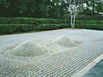 室町時代を代表する枯山水の庭。表現される蓬莱山から大海へ至る水の流れが、方丈を取り巻くように展開しています。