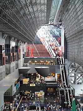 初代京都駅舎が開業して百余年、大階段など斬新なデザインで平成9年にオ−プン。