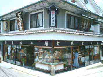 産寧坂の階段をのぼりつめたところにある七味唐がらし店。