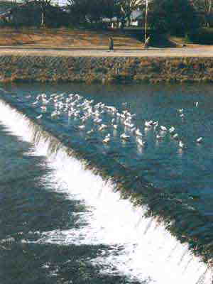 賀茂川にたわむれるユリカモメ