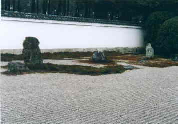 本堂の前には「峨眉山の庭」と称される枯山水庭園あり白砂が広がっています。