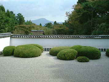 比叡山を借景とした枯山水の庭園は、小堀遠州作と伝えられます。