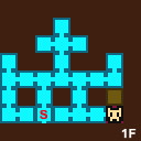■次に中央のスイッチで青い床を下にしたら、部屋の右下方面へ進み、下側で突き当たった右のボス部屋手前でマップを入手します。戻ってカギを開けて入る左の部屋へ進んだら、しかけは無視して地下に降りましょう。