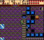 ■次に最初に降りてきた場所から右に進み、下方向の部屋から段差上先のクリスタルスイッチで一旦青い床を下げ、段差に上がった部屋左でコンパスを入手後に元の赤い床が下がっている状態に戻します。