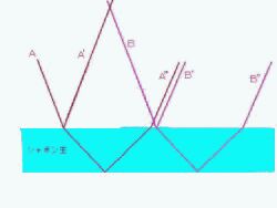 シャボン玉が虹色に輝くのは、太陽光や蛍光灯などの白色の光による干渉のためです。干渉というのは波の性質の1つです。波は山と谷のあるうねうねとした曲線(高校でならうsin曲線を思い浮かべてください)で描かれます。2つの波が同じ場所にくるとき、それぞれの山(谷)どうしが重なると、山の高さ(谷の深さ)は大きくなります(強めあい)。 しかし、一方の山と他方の谷が重なると、その場所では波がなくなります(弱めあい)。光も波の一種で、干渉がおきます。シャボン玉では、白色光がシャボン玉の外側の面で反射してくるものと、内側の面で反射してくるものどうしで干渉します。あるところを見ると光が強めあったり弱めあったりします。 しかも、白色光は虹色とよばれる光を含んでいます。この虹色は光の波のある山ととなりの山との間の距離(波長)の違いのことです。波長の長い光は赤色、短いのが紫です。干渉で強めあう位置は波長によって少しづつずれるので、場所ごとに赤色が見えたり、青色がみえたり紫色が見えたりします。 シャボン玉は、シャボン玉液の薄い膜で、重力や表面からの蒸発などの影響で薄さが均一ではなく、常に変化しています。不均一な薄さによって光の屈折が変わり、虹色に見えるのです。(光は膜の表面で屈折します)シャボン玉は、水分がどんどん蒸発していって、光の波長よりも薄くなってしまうと、もう光が屈折することができないのでくすんで見えるのです。シャボン玉が壊れる直前には、シャボン液の界面活性剤(せっけんとか)の分子が2個並んだ厚さにまでなります。 これは、界面活性剤の分子は、水とむすびつきやすい親水基と油と結びつき易い親油基を両端に持っていて、真中に水(シャボン液)、両側に界面活性剤の分子が並び、膜の表面に親油基、内側に親水基という向きになるからです。(極限まで薄くなって分子の整列した膜は、その発見者の名前を取って「ラングミュア膜」と呼ばれます) 多分それは、プリズムと同じような、光の分解が起こっているからだと思います。色ガくすんでいくのは、そこの部分のシャボン玉のまくが薄くなっていくからだと思います。(重力で下のほうに液が集まっていくから) Tsuneさんはよく観察されてますね。特に割れる直前のシャボン玉の色が変わるなんてくろぅは知りませんでした。ずばり正答があるサイトがありました。詳しくはそのページを参照していただくことにして、要するにあのきれいな虹色は光の干渉によって起こるということです。シャボン玉は透明なために、表では光の反射と進入がおこり、それは裏側でも同様です。これらが互いに干渉してきれいな模様を作るということです。割れる寸前に色がなくなるのは干渉が起こらないほどシャボン玉の膜が薄くなるためということです。 参考URL:名古屋市科学館 http://www.ncsm.city.nagoya.jp/exhibits/S/S1/2107.html ちなみに、石鹸水の中に松ヤニとかグリセリンを混ぜるとよりきれいな色が見られるそうですよ。ではTsuneさん、きれいな色レポート待ってますね。 詳しくは中学校で習います。 簡単に言えば『光の反射』なんですよね。 はじけるときに濁るのは、シャボン玉の下の方に液がたまってしまうからです(^^ゞ シャボン玉がキレイなのはきっと俺の前に誰かが説明してくれるはずなので省略。(他力本願。屈折率関係。)シャボン玉が割れると言うのは、シャボン玉を形作っている液が重力で上の方が薄くなってしまうからです。その時、薄いと屈折率が…きっととっちんさんが説明してくれるはず(w 困ったな〜〜〜! 得意分野ではないですよ。 (得意分野なんて初めから無いんですけどね) でもご指名なので「屈折率」についてご説明させて頂きます。 屈折率:光波が一つの媒質から他の媒質に入射するとき、入射角の正弦が屈折角の正弦に対する比をいう。by.小学館 国語大辞典 ちょっと難しいね、私にも理解できない部分があります。でもって、図を見て下さい、入射光A、B、反射光A’、A”、B’、B”がありBとA”の交点、BとA”の交点に干渉が起こります。 又、シャボン玉というのは常に乾燥していきますし、フワフワしてますので液面の厚さが一定になっていることなどあり得ないし反射角も変化しますので光波の干渉がいたる場所で常に起こっていると考えられます。って所でこれ以上考えていると頭パンクしそうなので勘弁して下さい。 ![]() |